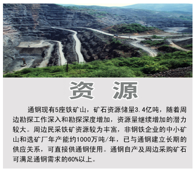 通化钢铁股份有限公司(以下简称“通钢”),是吉林省最大钢铁联合企业,也是国家振兴东北老工业基地重点支持企业。通钢始建于1958年6月,现已发展成集采矿、选矿、烧结、焦化、炼铁、炼钢、轧钢于一体的大型钢铁联合企业。2010年7月与首钢联合重组,成为首钢集团在东北地区主要钢铁生产基地。